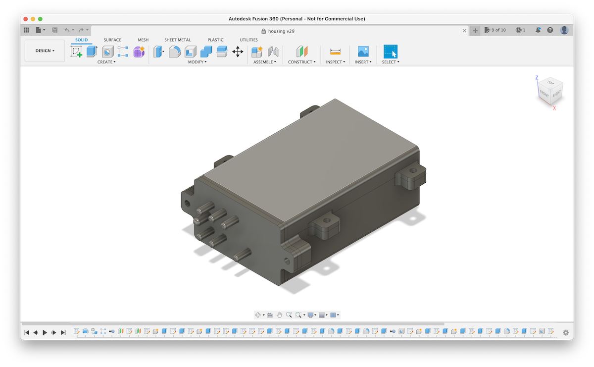 The last step (after soldering the sytem on some perf board) was creating a housing to hold the new relay. Time to fire up the 3D printer! Since it's going inside a car, PLA isn't going to cut it. Instead I used PETG, as my Creality printer can handle it well and I've had decent luck at prints lasting inside the car on a hot day. I carefully cut some of the pins off of an old relay that I had, and designed the enclosure's harness mating surface to encapsulate them.